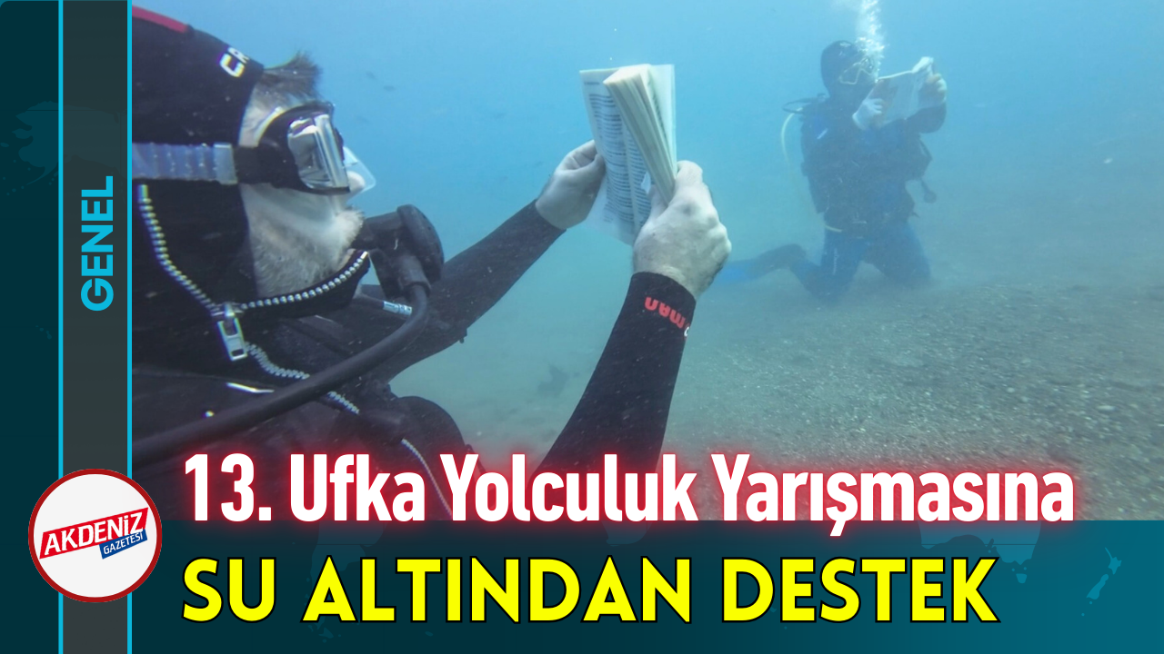 Antalya'da bir grup dalgıç, 13. Ufka Yolculuk Bilgi ve Kültür Yarışması'na dikkati çekmek amacıyla su altında kitap okuma etkinliği gerçekleştirdi.