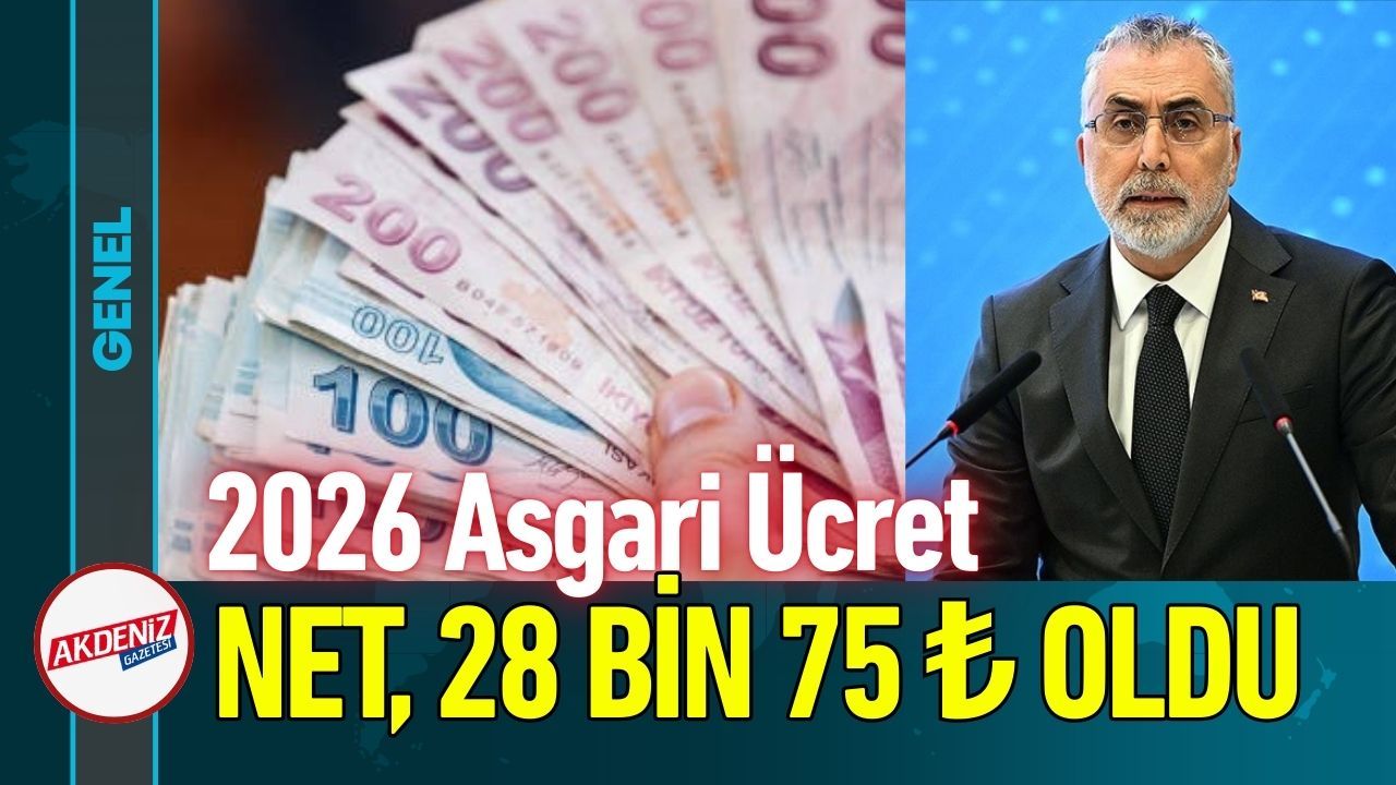 Çalışma ve Sosyal Güvenlik Bakanı Vedat Işıkhan, milyonlarca çalışanı ilgilendiren 2026 yılı asgari ücret tutarını açıkladı. Buna göre 1 Ocak 2026 tarihinden itibaren geçerli olacak net asgari ücret 28 bin 75 lira, brüt asgari ücret ise 33 bin 30 lira olarak belirlendi.