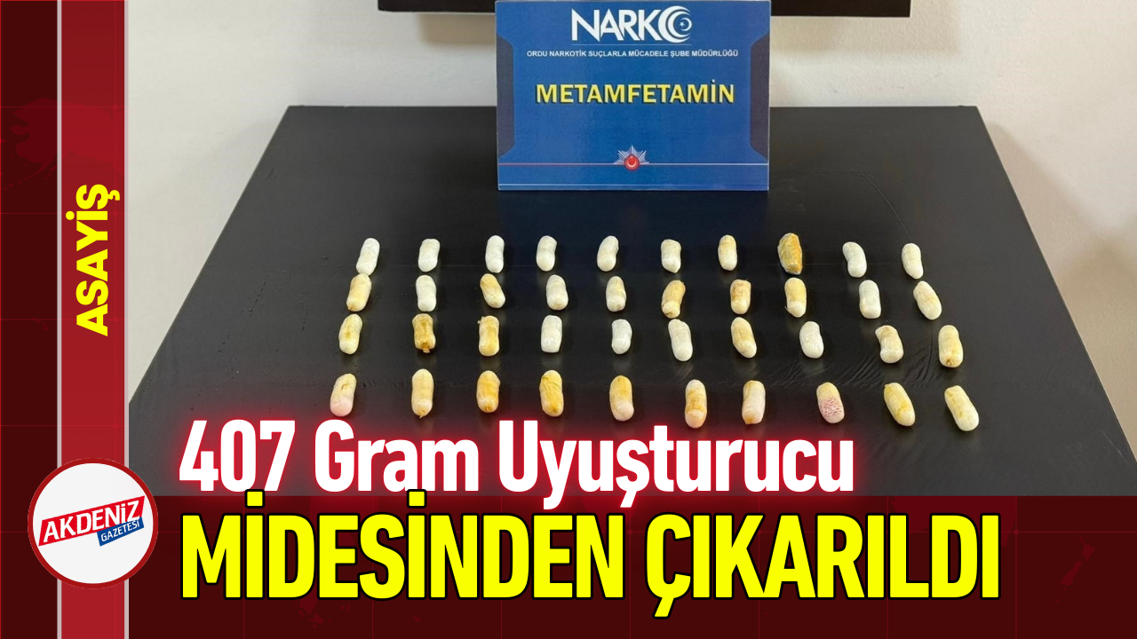 Hastanede yapılan radyolojik görüntülemede, şüphelinin midesinde çok sayıda yabancı cisim tespit edildi. Gerçekleştirilen tıbbi müdahalenin ardından, 40 adet kapsül halinde yaklaşık 407 gram metamfetamin ele geçirildi.