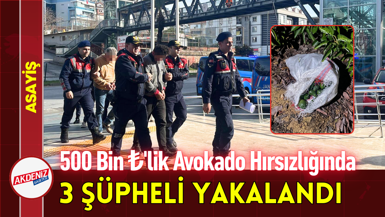 Antalya'nın Alanya ilçesinde bir bahçeden 500 bin liralık avokado çalan 3 şüpheli, jandarma ekiplerince yakalandı.