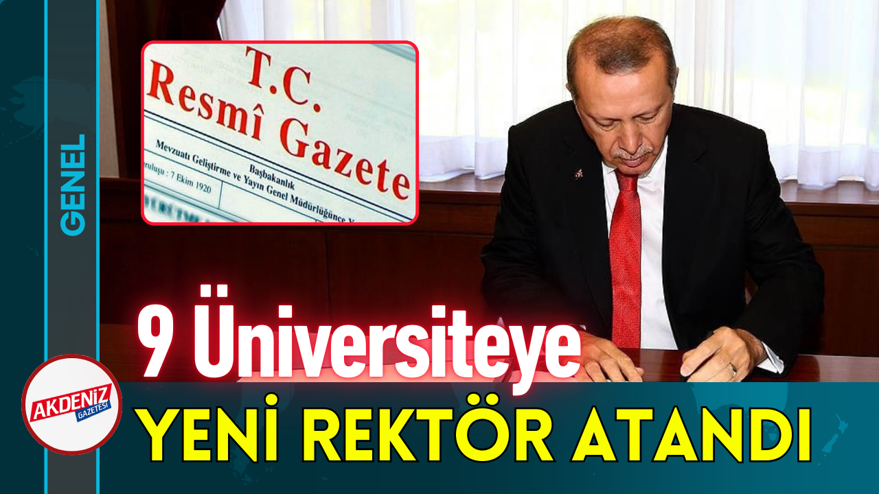 Cumhurbaşkanlığı tarafından 9 üniversiteye yeni rektör ataması Resmi Gazete’de yayımlandı. Yayımlanan atamalara göre, Altınbaş Üniversitesi Rektörlüğü'ne Prof. Dr. Cemal İbiş, Antalya Belek Üniversitesi Rektörlüğü'ne Prof. Dr. Abdullah Kuzu, Bolu Abant İzzet Baysal Üniversitesi Rektörlüğü'ne Prof. Dr. Faruk Yiğit, Ege Üniversitesi Rektörlüğü'ne Prof. Dr. Musa Alcı, İzmir Bakırçay Üniversitesi Rektörlüğü'ne Prof. Dr. Rasim Akpınar, Mimar Sinan Güzel Sanatlar Üniversitesi Rektörlüğü'ne Prof. Dr. Ahmet Sacit Açıkgözoğlu, Niğde Ömer Halisdemir Üniversitesi Rektörlüğü'ne Prof. Dr. Hasan Uslu, Türkiye Uluslararası İslam, Bilim ve Teknoloji Üniversitesi Rektörlüğü'ne Prof. Dr. Mehmet Görmez ve Uşak Üniversitesi Rektörlüğü'ne Prof. Dr. Ahmet Demir atandı. Atamalar Cumhurbaşkanı Recep Tayyip Erdoğan’ın imzasıyla yayımlandı.