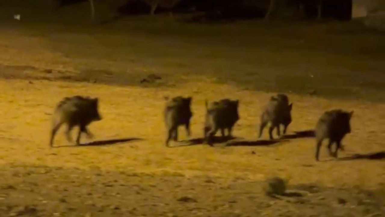 Gözlemlerini aktaran Candan Demir, "Köyden geçerken domuz sürüsünü gördük. Biz de o anları hemen kayıt altına aldık. Biraz bekledikten sonra domuz sürüsü gece karanlığa karışarak gözden kayboldu" dedi.