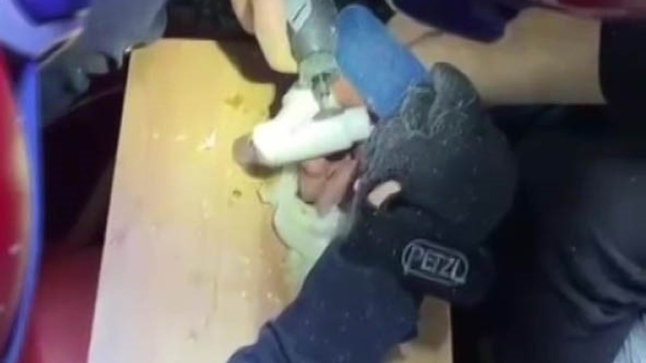Cankur ekipleri, parmağın metal boru içerisinde tamamen sıkıştığını tespit etti. Parmağa zarar gelmemesi amacıyla bölgede koruyucu önlemler alan ekipler, boruyu kesmek için özel bir mikro testere kullandı. Sabır ve dikkat isteyen operasyon sırasında vatandaşın sakin kalması sağlanarak metal parça milim milim kesildi.