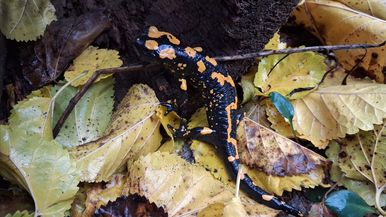 Adana'nın Saimbeyli ilçesinde nesli tükenme tehlikesi altında olan sarı benekli semender görüldü.