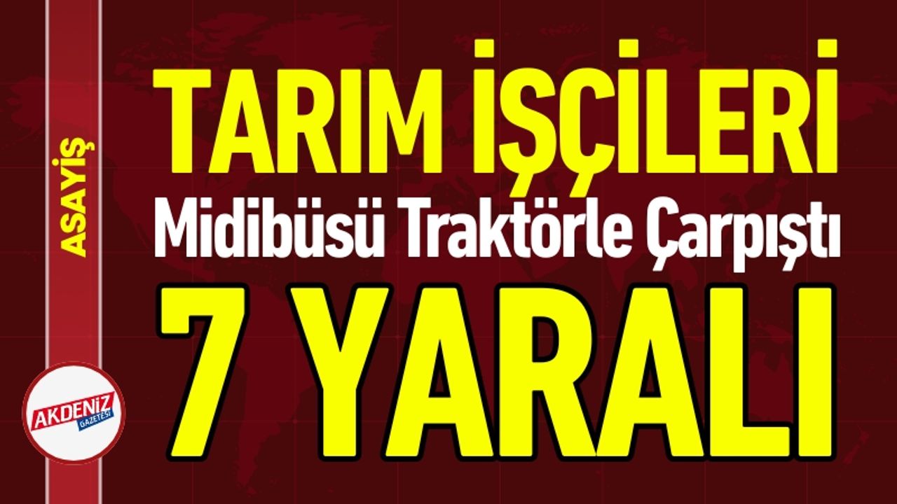 Adana'da tarım işçilerini taşıyan midibüsün traktörle çarpışması sonucu meydana gelen kazada 7 kişi yaralanırken, hastaneye kaldırılan yaralılardan birinin durumunun ağır olduğu öğrenildi.