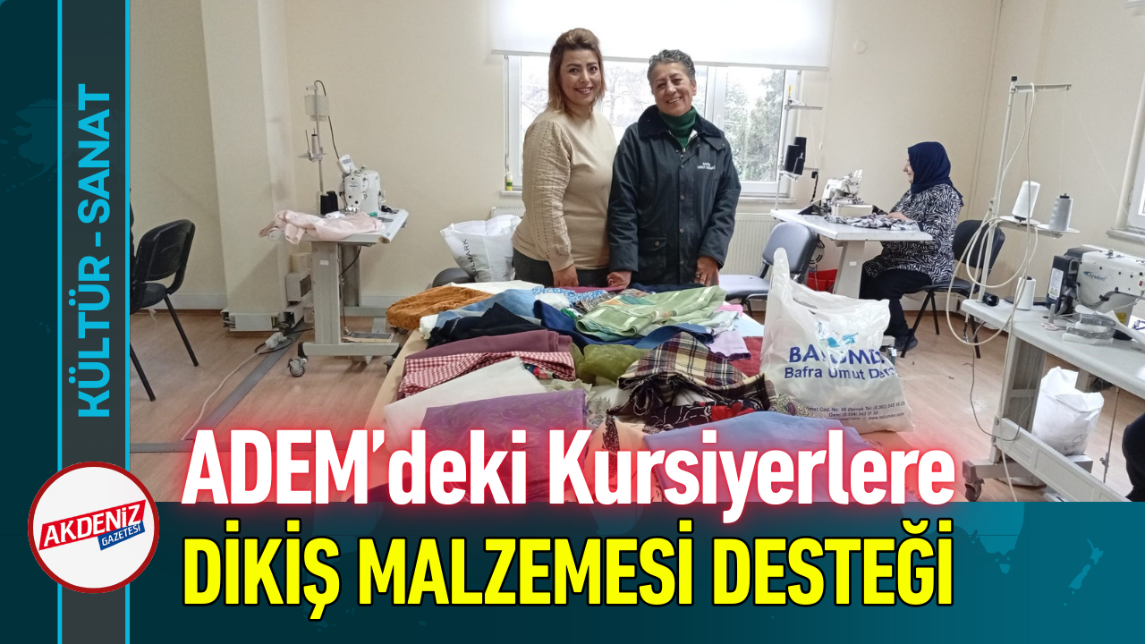 Samsun'un Bafra ilçesinde faaliyet gösteren Bafra Umut Derneği, sosyal sorumluluk çalışmaları kapsamında Bafra Kaymakamlığı bünyesinde hizmet veren Aile Destek Merkezi'nde (ADEM) dikiş kursuna katılan kadın kursiyerlere kumaş, biçki ve çeşitli dikiş malzemeleri desteği sağladı.