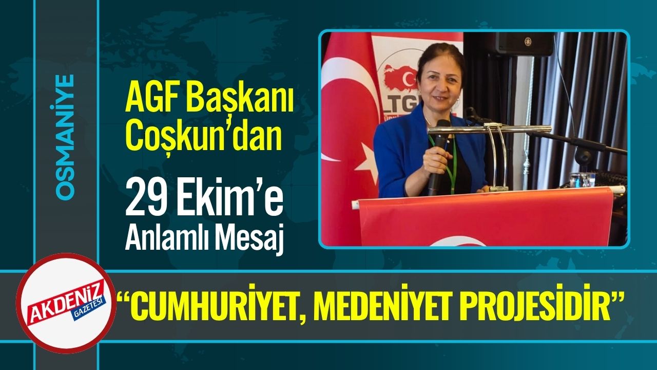 Akdeniz Gazeteciler Federasyonu (AGF) Genel Başkanı Gaye Coşkun, Cumhuriyet’in 102. yılı dolayısıyla bir kutlama mesajı yayımladı. Coşkun, mesajında Cumhuriyet’in yalnızca bir yönetim biçimi değil, aynı zamanda aklın, bilimin, özgürlüğün ve milli iradenin sembolü olduğunu belirtti.