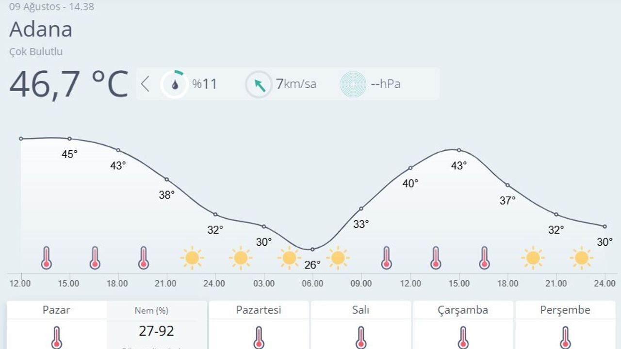 Adana, 9 Ağustos 2025’te termometrelerin 46,7 dereceyi göstermesiyle son 95 yılın Ağustos ayı sıcaklık rekorunu kırdı.
