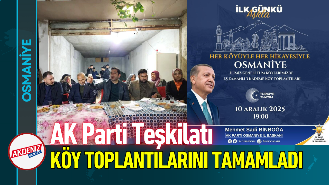 AK Parti Osmaniye İl Başkanlığı, il genelinde 3 kademe teşkilatın katılımıyla yürüttüğü ortak köy toplantılarını tamamladı. 10 Aralık 2025 Çarşamba günü saat 19.00’da başlayan toplantılar, köy deprem konutları, köy başkanlarının evleri ve uygun görülen yönetim kurulu üyelerinin evlerinde gerçekleştirildi.