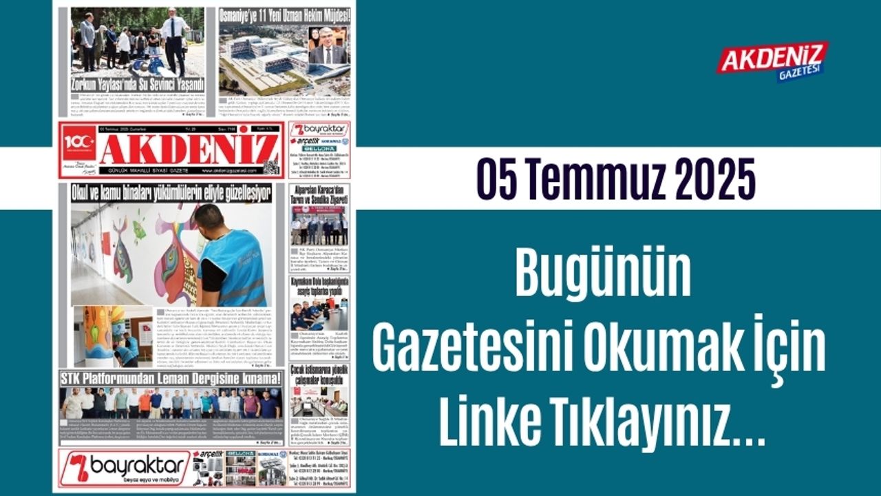 Akdeniz Gazetesi'nin 05 Temmuz 2025 tarihli sayfalarında hangi haberlere yer aldı? Osmaniye'de hangi konularda, ne gibi gelişmeler oldu? Detayları okumak için gazetemizin sayfalarını takip edin...