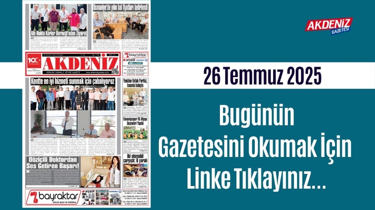 Akdeniz Gazetesi'nin 26 Temmuz 2025 tarihli sayfalarında hangi haberlere yer aldı? Osmaniye'de hangi konularda, ne gibi gelişmeler oldu? Detayları okumak için gazetemizin sayfalarını takip edin...
