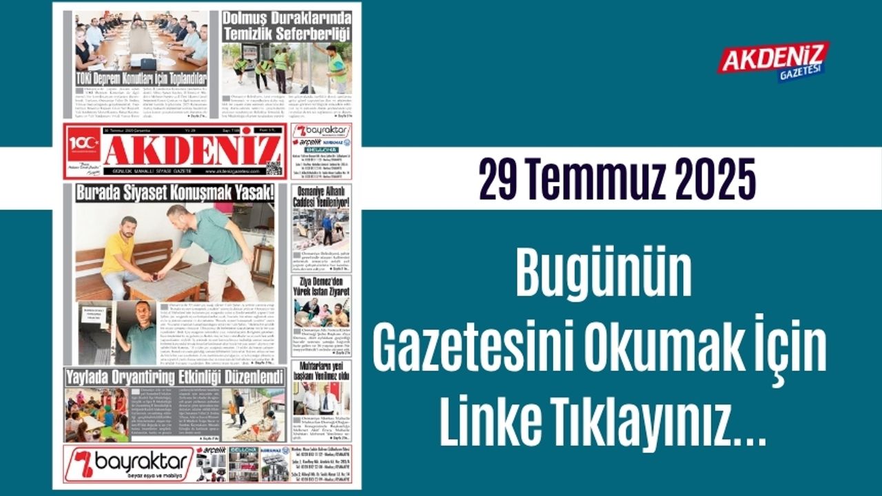 Akdeniz Gazetesi'nin 30 Temmuz 2025 tarihli sayfalarında hangi haberlere yer aldı? Osmaniye'de hangi konularda, ne gibi gelişmeler oldu? Detayları okumak için gazetemizin sayfalarını takip edin...