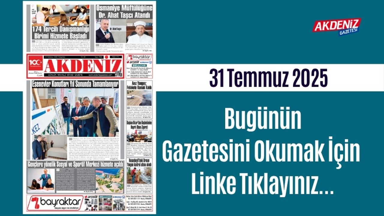 Akdeniz Gazetesi'nin 31 Temmuz 2025 tarihli sayfalarında hangi haberlere yer aldı? Osmaniye'de hangi konularda, ne gibi gelişmeler oldu? Detayları okumak için gazetemizin sayfalarını takip edin...
