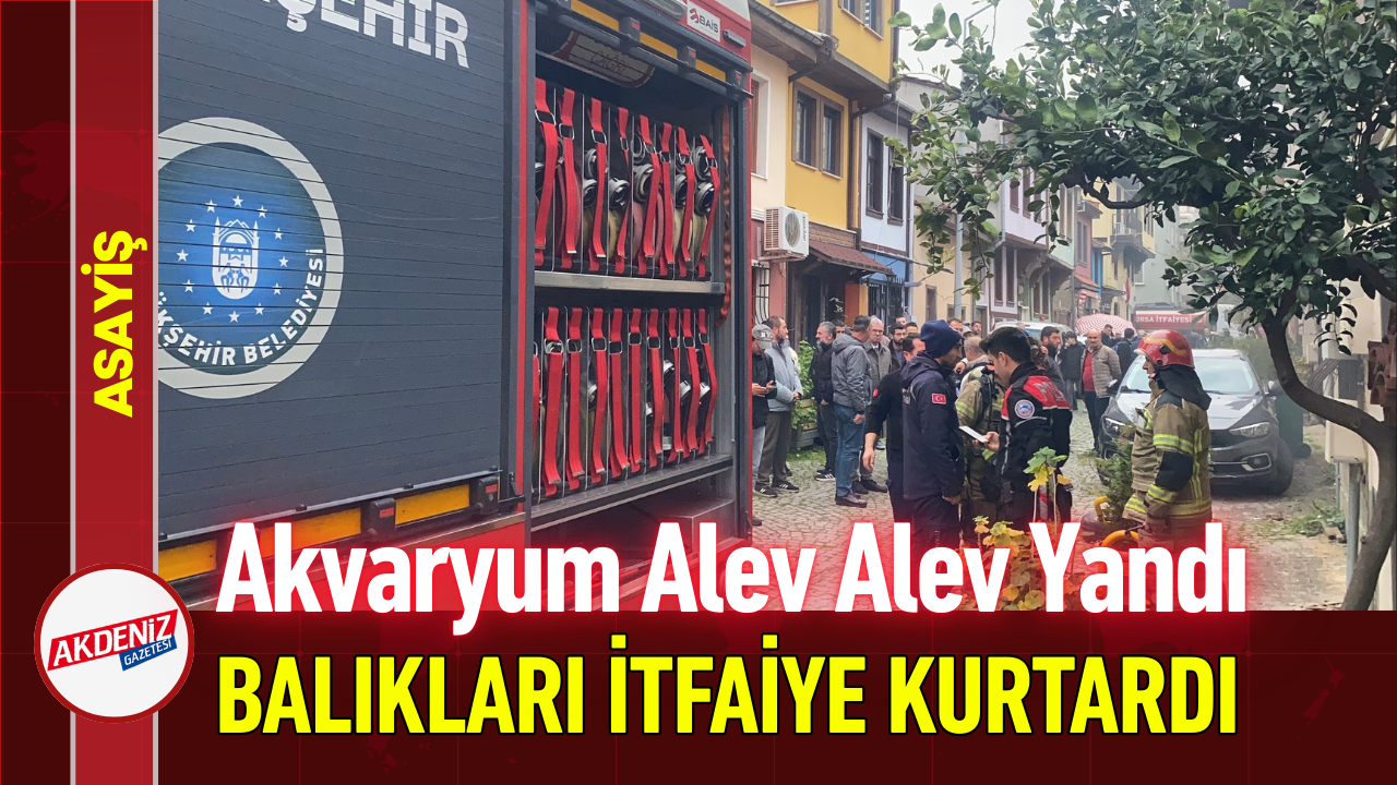 Yangın sırasında akvaryum içerisinde bulunan balıklar, itfaiye ekipleri tarafından akvaryumdan çıkarılarak kurtarıldı.