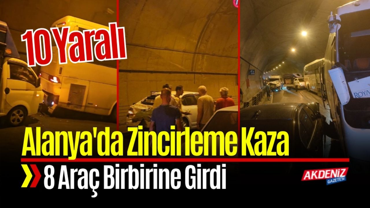 Antalya'nın Alanya ilçesindeki tüneller mevkiinde sabah saatlerinde meydana gelen zincirleme trafik kazasında 8 araç birbirine girdi. Kazada 10 kişi yaralandı.