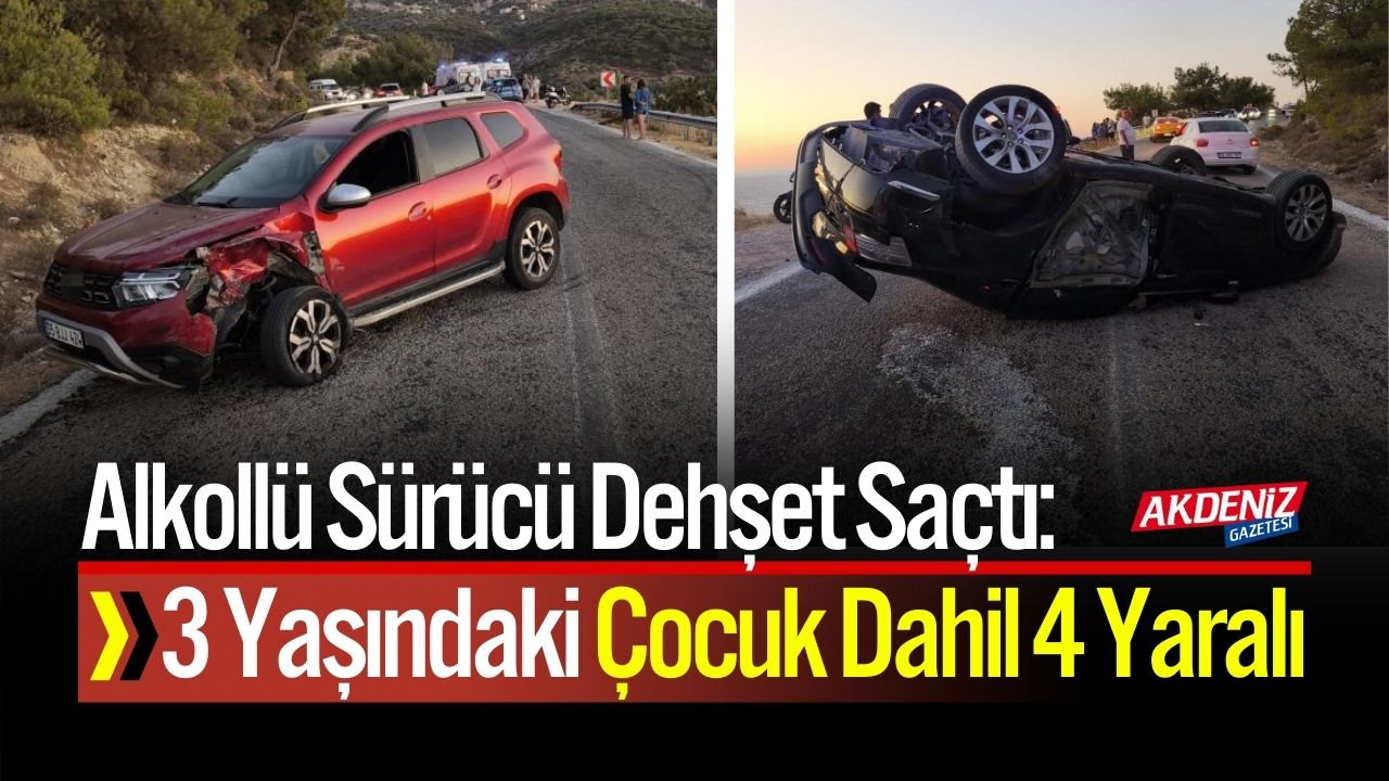 İzmir’in Foça ilçesinde meydana gelen trafik kazasında 3 yaşındaki bir çocuk da dahil olmak üzere 4 kişi yaralandı. Sürücünün, yasal sınırın yaklaşık dört katı alkollü olduğu belirlendi.