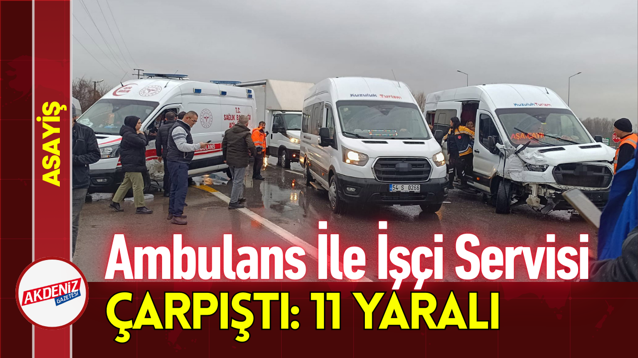 Sakarya'nın Akyazı ilçesinde ambulans ile işçi servisinin çarpıştığı kazada 11 kişi yaralandı.