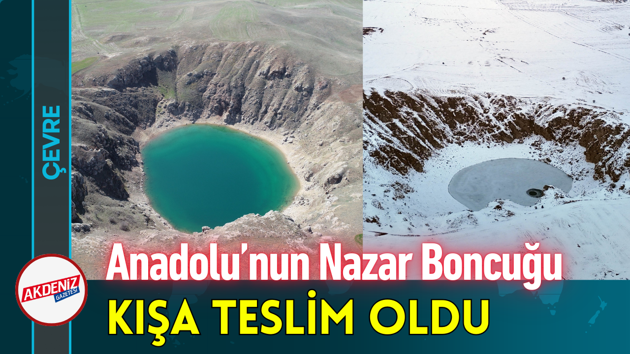 Sivas'ta bulunan ve güneşin konumuna göre renk değiştiren Kızılçan Gölü, soğuk havanın etkisiyle dondu. Sivas'ın en büyük krater göllerinden biri olan Kızılçan Gölü'nde kartpostallık görüntüler oluştu.