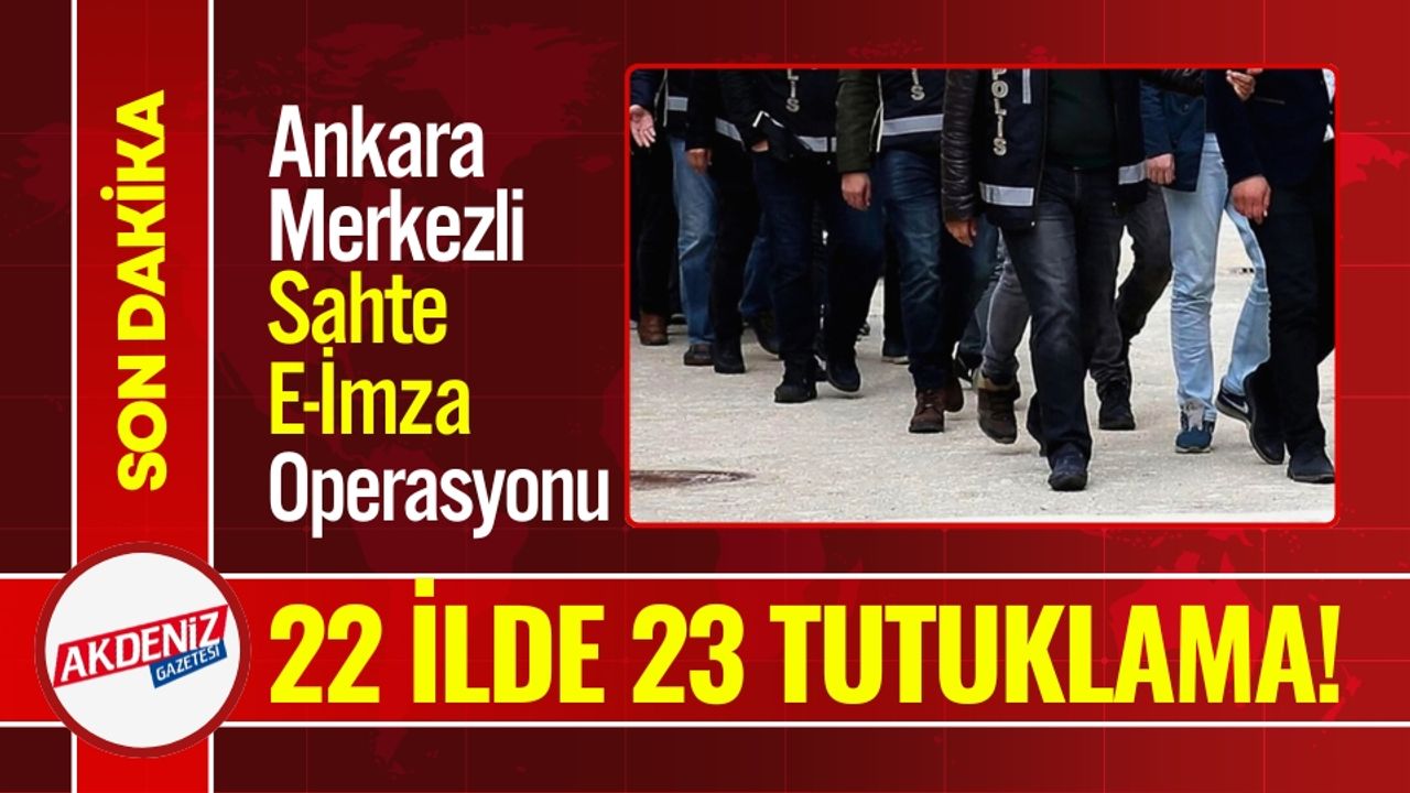 Ankara Cumhuriyet Başsavcılığı tarafından yürütülen sahte e-imza soruşturması kapsamında düzenlenen geniş çaplı operasyonlarda önemli bir gelişme yaşandı. 22 ilde eş zamanlı gerçekleştirilen üçüncü dalga operasyonlarda 94 şüpheli gözaltına alınırken, adliyeye sevk edilen şüphelilerden 23’ü tutuklandı.