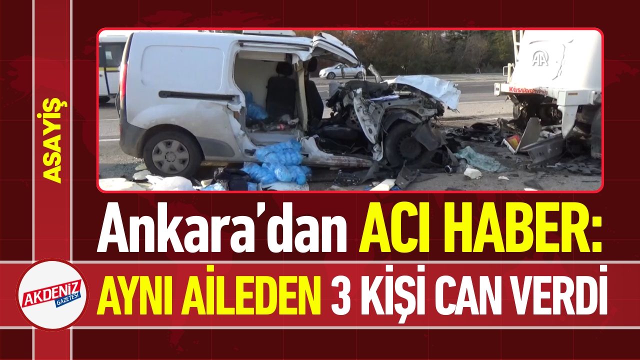 Ankara’nın Kahramankazan ilçesinde meydana gelen trafik kazasında, sürücüsünün kontrolünü kaybettiği otomobil park halindeki tırın çekicisine çarptı. Kazada anne, baba ve 1 yaşındaki kızları yaşamını yitirdi.