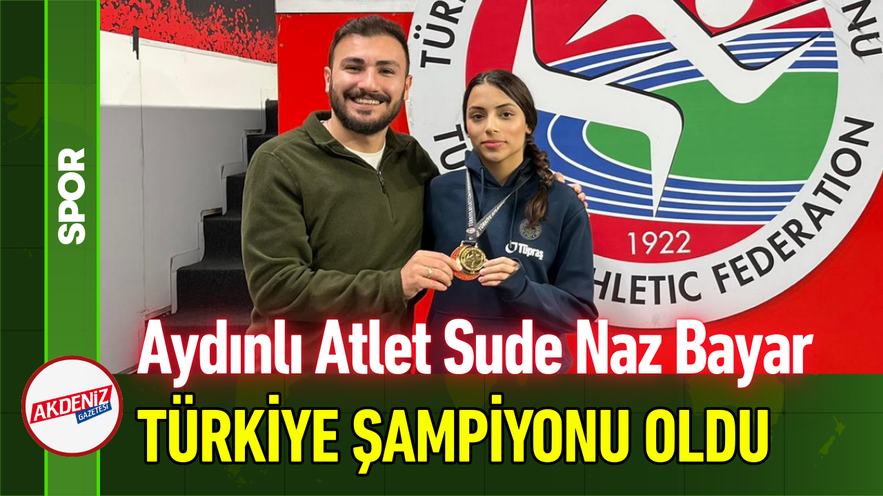 U-20 Türkiye Salon Atletizm Şampiyonası, İstanbul'un ev sahipliğinde gerçekleştirildi. Toplamda 434 sporcunun katıldığı şampiyonada mücadele eden Aydınlı sporcu Sude Naz Bayar ise 60 metre branşında en iyi dereceyi elde ettik. Kıyasıya rekabetin yaşandığı şampiyonada Bayar, 7.70 saniyelik dereceyle Türkiye şampiyonu oldu. Genç atleti tebrik eden Aydın Gençlik ve Spor İl Müdürlüğü'nden yapılan açıklamada "İstanbul ilinde düzenlenen U-20 Türkiye Salon Atletizm Şampiyonası'nda Kuyucak ilçemizden Sude Naz Bayar, 60 metre branşında 7.70 saniyelik en iyi derecesiyle Türkiye şampiyonu olmuştur. Sporcumuzu tebrik eder, başarılarının devamını dileriz" ifadeleri yer aldı.