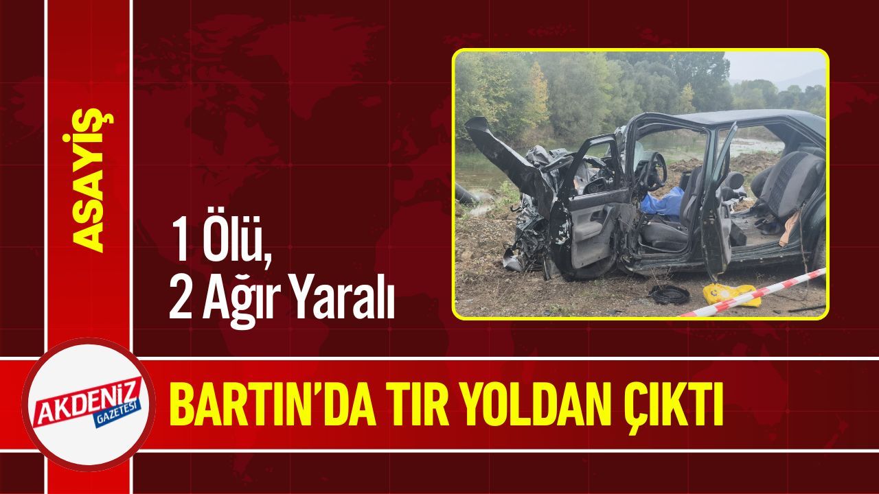 Bartın'da yağış nedeniyle kayganlaşan yolda karşı şeride giren tır, otomobile çarptı. Kazada 1 kişi hayatını kaybetti, 2 kişi de yaralandı.