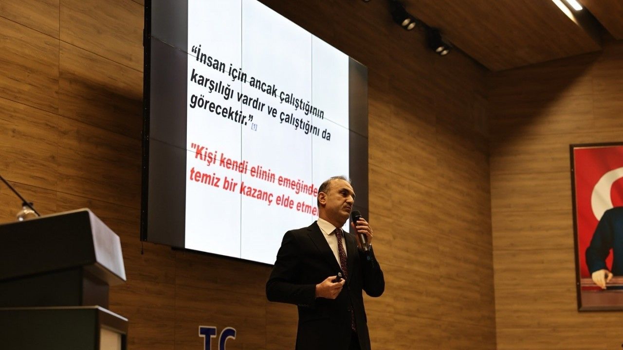 Din Hizmetleri Şube Müdürü Cemalettin Torun, sunumunda iş ahlakının manevi boyutuna vurgu yaptı. Hazreti Muhammed’in (SAV) örnek hayatından kesitler sunan Torun, kamu hizmeti yürüten her çalışanın görevini en üst düzeyde millete hizmet bilinciyle icra etmesi gerektiğini belirtti. Ayrıca, çalışma ortamında empati, hoşgörü ve adaletin sağlanmasının kurum içi huzur ve dışarıya yansıyan hizmet kalitesi açısından hayati önem taşıdığına dikkat çekti.