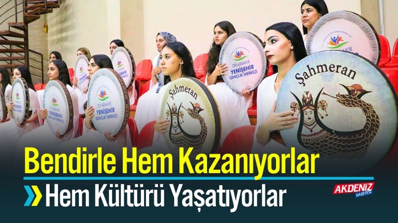 Diyarbakır’da bendir eğitimi alan genç kızlar, kurdukları “Şahmeran Erbane Grubu” ile tören ve düğünlerde sahneye çıkıyor. Gençler hem kültürel değerleri yaşatıyor hem de aile bütçelerine katkı sağlıyor.