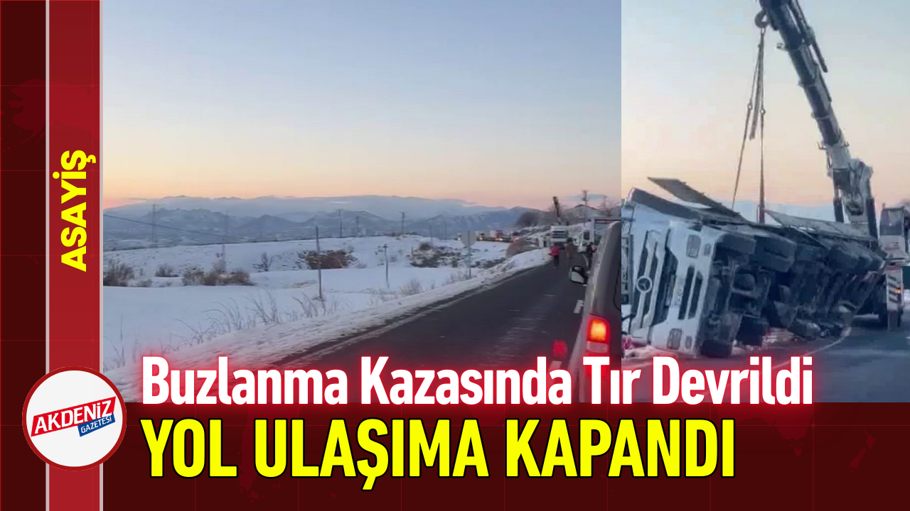 Diyarbakır-Bingöl karayolunda buzlanma nedeniyle sürücüsünün kontrolünden çıkan tır devrildi. Kaza nedeniyle yol bir süredir ulaşıma kapandı.