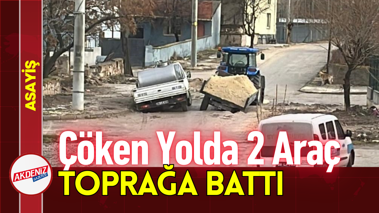 Eskişehir'in Seyitgazi ilçesinde doğal gaz çalışması sonrası toprakla kapatılan yol, üzerinden süt tankeri ve traktör geçerken çöktü.