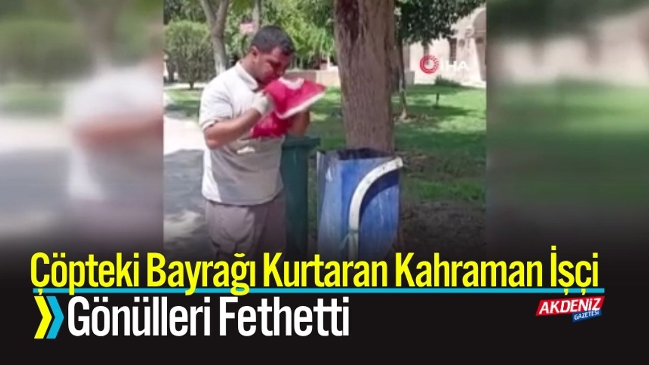 Şanlıurfa'da görevli temizlik işçisi Ahmet Asım Bülte, çöp konteynerinde bulduğu Türk bayrağını öperek temizlemesiyle takdir topladı.