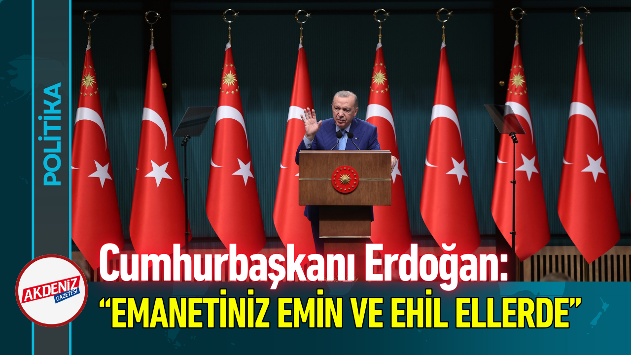 Cumhurbaşkanı Recep Tayyip Erdoğan, "Dünyada merkezinde bölgemizin olduğu sancılı bir dönüşüm yaşanırken, Türkiye olarak belirlediğimiz hedeflere doğru adım adım kararlılıkla ilerliyoruz. Hiç endişeniz olmasın. Emanetiniz emin ve ehil ellerdedir; liyakatli kadrolar Türkiye'de iş başındadır" dedi.