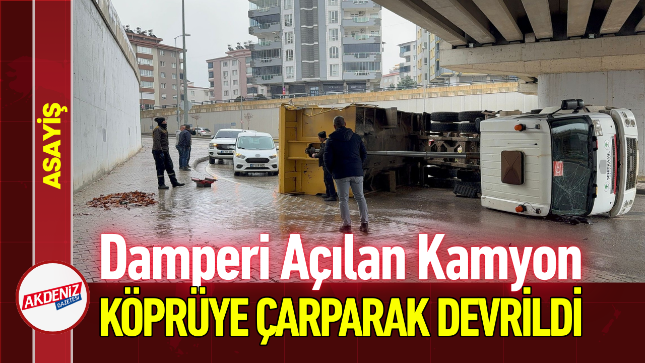 Kaza, Şehitkamil ilçesi Mustafa Taşar Caddesi’nde meydana geldi. İddiaya göre, plakası ve sürücüsü öğrenilemeyen kamyonun damperi seyir halinde ilerlerken bilinmeyen bir nedenle açıldı. Açık damperin köprüye çarpması sonucu sürücünün direksiyon hakimiyetini de kaybettiği kamyon yan yattı. Kazayı sürücüsünün yara almadan atlattığı öğrenilirken, kamyonda maddi hasar oluştu. Kaza nedeniyle yol bir süre trafiğe kapatıldı.