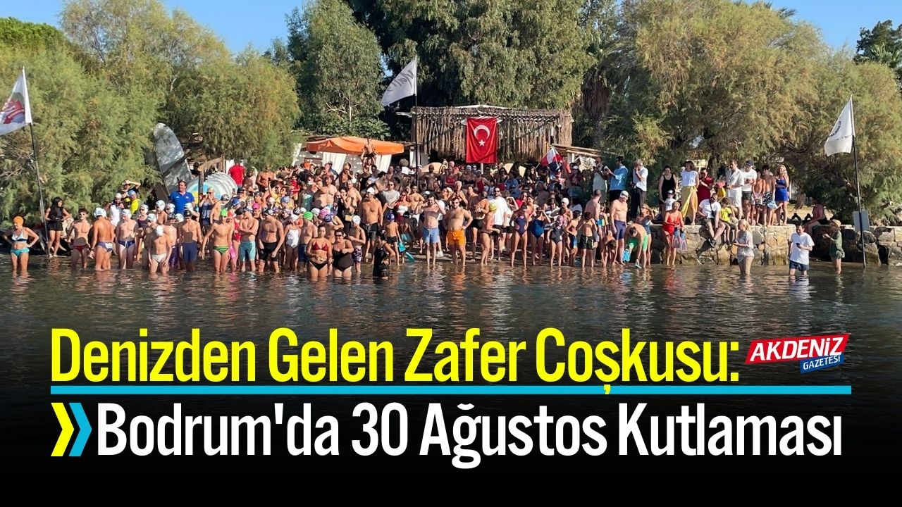 Ortakent sahilinden düdükle birlikte kulaç atan yüzücüler, Zafer Bayramı nedeniyle Çelebi Adası'na doğru yüzdü. Aileler, kıyıdan cep telefonlarıyla bu anları görüntüleyerek coşkuya ortak oldu. Naz İşbilir öncülüğünde bu yıl 14'üncüsü yapılan organizasyonda güvenliği Sahil Güvenlik botları sağladı. Yarış formatında olmayan yüzme etkinliği, en son katılımcının adaya ulaşmasıyla tamamlandı.