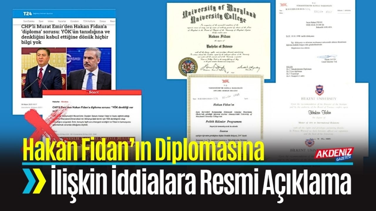 Açıklamaya göre, Hakan Fidan lisans eğitiminin ardından Yükseköğretim Kurulu’na (YÖK) denklik başvurusunda bulundu ve denklik belgesi, 15 Ocak 1998 tarihli Yükseköğretim Yürütme Kurulu kararıyla verildi. Açıklamada ayrıca, Fidan’ın Bilkent Üniversitesi’nde Uluslararası İlişkiler alanında yüksek lisans ve doktora derecelerini aldığı da vurgulandı. Dezenformasyonla Mücadele Merkezi, “Kamuoyunu manipüle etmeye yönelik asılsız iddialara itibar etmeyiniz” ifadelerine yer verdi.