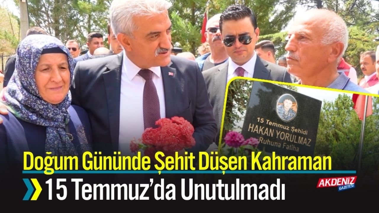Kırıkkale’de 15 Temmuz Demokrasi ve Milli Birlik Günü etkinlikleri kapsamında düzenlenen törenlerde, Fetullahçı Terör Örgütü’nün (FETÖ) 15 Temmuz 2016’daki hain darbe girişiminde doğum gününde şehit düşen Özel Harekat Polisi Hakan Yorulmaz’ın anısı yaşatıldı. Şehidin mezarı, protokol üyeleri ve vatandaşlar tarafından ziyaret edilerek dualar edildi.