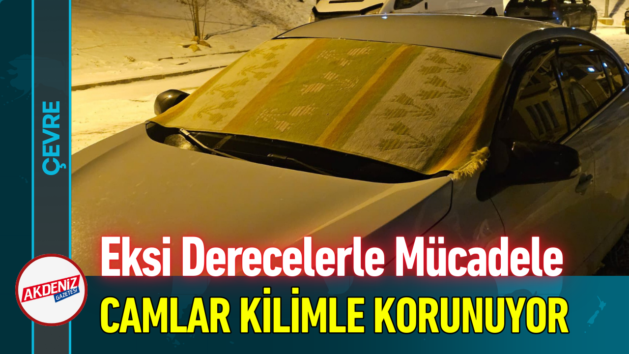Elazığ'da vatandaşlar, gece saatlerinde eksilere düşen hava sıcaklığı nedeniyle araçlarının camlarını kilimle korumaya çalışıyor.