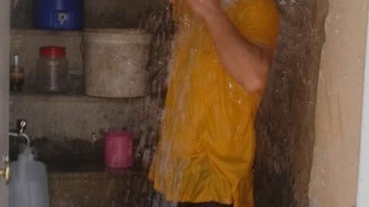 Esnaf Haşim Doğan ise sıcaktan korunmak için üzerine kovayla soğuk su dökerek serinlemeye çalıştı.