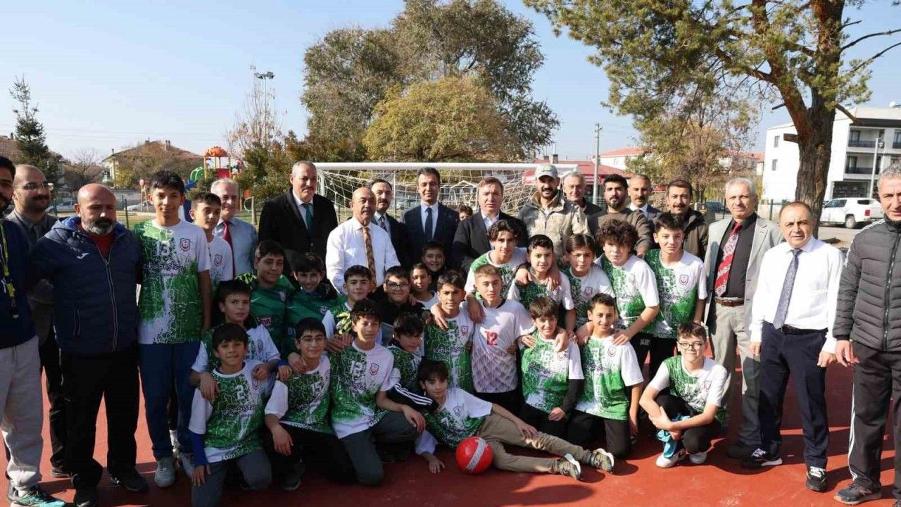 Açıklamaların ardından Vali Aydoğdu ve birim amirleri, öğrencilerle birlikte kauçuk zeminli oyun alanında futbol oynadı.