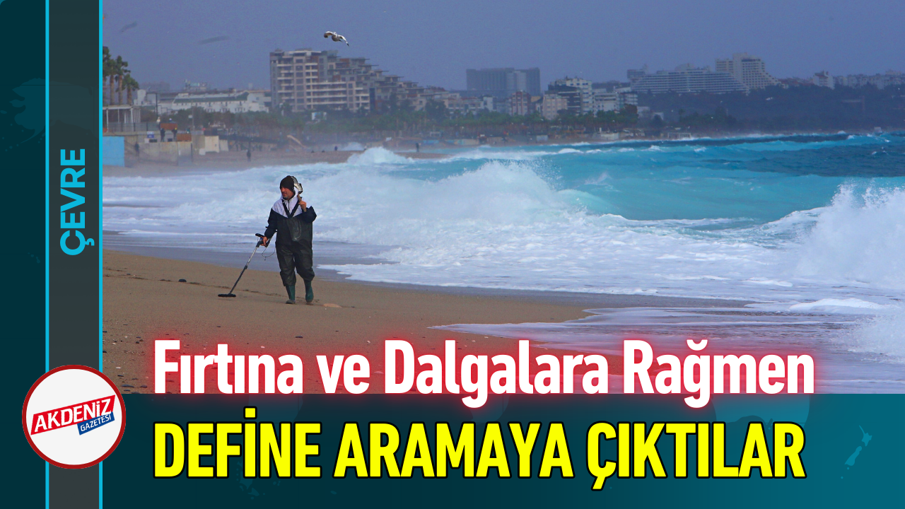 Antalya’da saatteki hızı 50 kilometreyi bulan rüzgar hayatı olumsuz etkilerken define avcıları sahile inerek değerli eşya ve madeni para aradı.