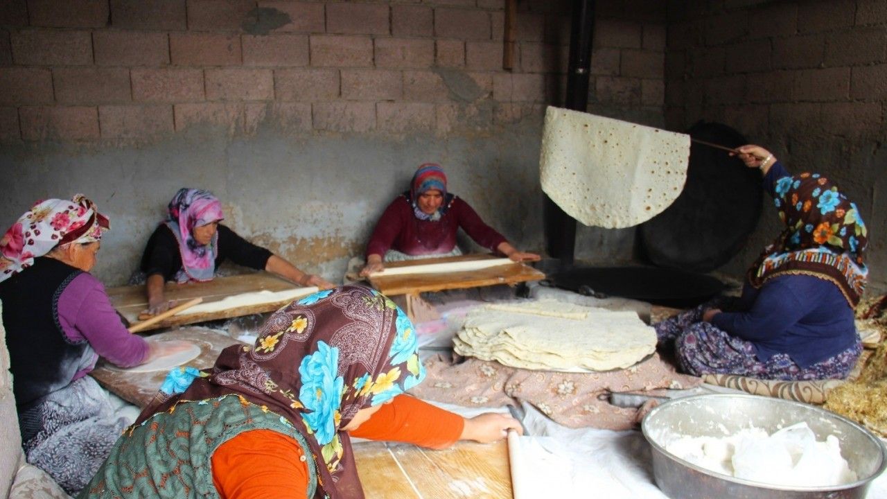 Ekmek pişiren Ayşe Gören, "Yaklaşan kış aylarına hazırlığımız devam ediyor. Bunlardan biri olan yufka (açık) ekmeğimizi yapıyoruz. Mahallenin kadınları kış gelmeden toplanıp, imece usulü birbirimize yardım ederek ekmeğimizi yapıyoruz. Bu komşular arasında dayanışmanın ve beraberliğin en güzel örneğidir" dedi.