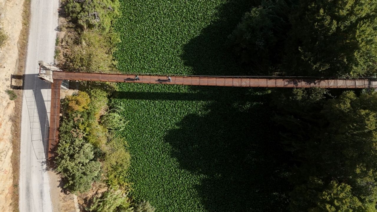 Nehir üzerindeki bu yoğun yeşil örtü, görenler için eşsiz bir görsel şölen sunarken, bölgenin otantik manzarasına yeni bir boyut kattı.