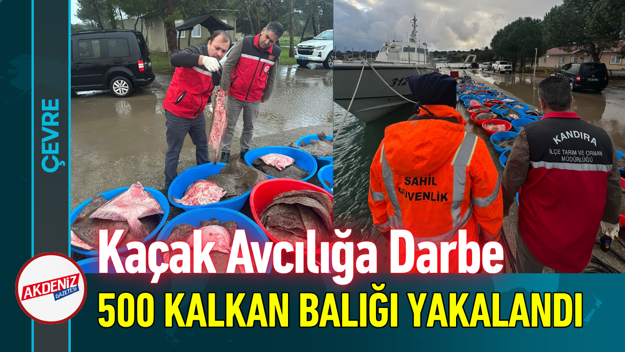 Sahil Güvenlik Komutanlığı, Kocaeli Tarım ve Orman İl Müdürlüğü ile Kandıra İlçe Tarım ve Orman Müdürlüğü'nün, kaçak avcılıkla mücadele çalışmaları kapsamında Kefken Balıkçı Barınağı'nda denetim yapıldı. Ekiplerin koordineli çalışması sonucu, yasa dışı yollarla avlandığı belirlenen, ortalama 7,5 kilogram ağırlığında yaklaşık 500 kalkan balığına el konuldu. Kaçak avcılık yaptığı tespit edilen kişilere idari yaptırım uygulandı.