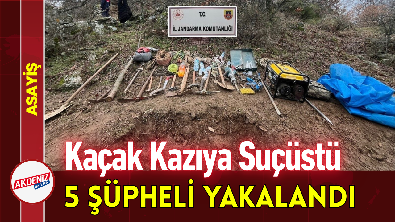 Manisa İl Jandarma Komutanlığı KOM Şube Müdürlüğü ile Gördes İlçe Jandarma Komutanlığı ekipleri tarafından 29 Ocak'ta saat 17.00 sıralarında müşterek olarak yürütülen çalışma kapsamında, izinsiz kazı yapıldığı bilgisi üzerine operasyon düzenlendi. Operasyonda A.A. (52), H.Y. (43), A.Y. (37), İ.B. (42) ve M.U.K. (29) isimli şahıslar kazı yaptıkları esnada suçüstü yakalandı.