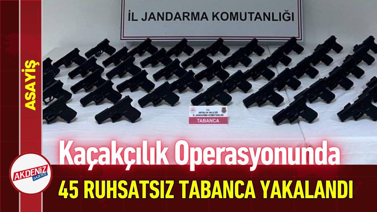 Antalya İl Jandarma Komutanlığınca yürütülen çalışmalar kapsamında, Serik Cumhuriyet Başsavcılığı talimatları doğrultusunda silah kaçakçılığı yaptığı tespit edilen şüphelilere yönelik operasyon gerçekleştirildi. Ekiplerce yapılan takip ve araştırmalar sonucunda, Serik ilçesinde ateşli silahlarla işlenen bazı olaylarda kullanılan tabancaların ticaretini yaptığı belirlenen bir şüpheliye ait araç durduruldu. Araçta yapılan aramada 45 adet Glock marka 9 mm ruhsatsız tabanca ile 45 adet tabanca şarjörü ele geçirildi. Şüpheli gözaltına alınırken, olayla ilgili adli tahkikatın devam ettiği bildirildi.