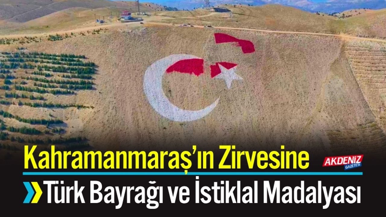 Kahramanmaraş’ta yaklaşık 1800 metre rakımdaki Ahır Dağı’nın zirvesinde, 46 dönümlük alana işlenen dev Türk bayrağı ve İstiklal Madalyası tamamlandığında, kent genelinden çıplak gözle rahatlıkla görülebilecek.