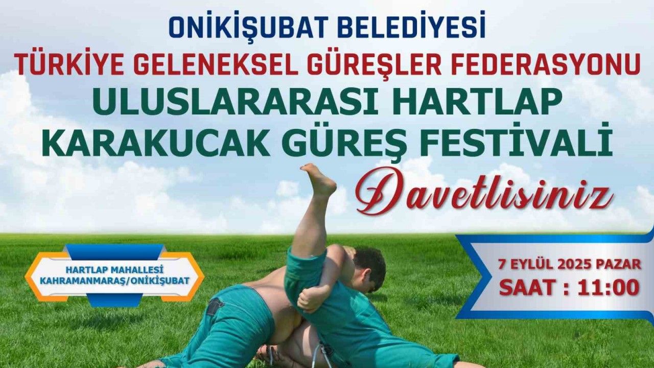 Kahramanmaraş Onikişubat Belediyesi, Türkiye Geleneksel Güreşler Federasyonu iş birliğiyle Uluslararası Hartlap Karakucak Güreş Festivali düzenleyecek. Festival 7 Eylül 2025 Pazar günü saat 11.00’de Hartlap Mahallesi’nde yapılacak.