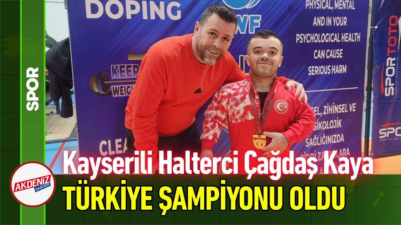 Kayserili Halterci Çağdaş Kaya; 59 kilo sıkletinde 165 kilo kaldırarak, Türkiye Şampiyonu oldu.