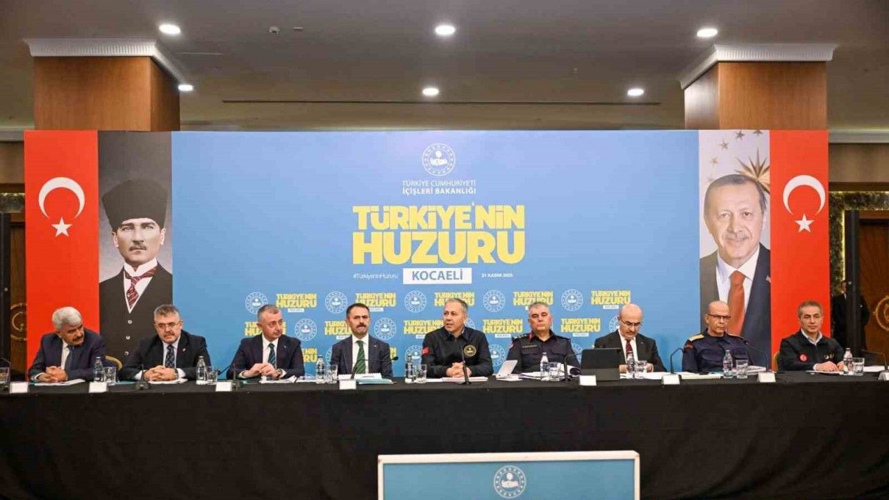 Bakan Yerlikaya, "Vatan toprağının her karışında gece demeden, gündüz demeden, emniyetimizle, jandarmamızla, sahil güvenliğimizle, AFAD’ımızla, göç idaremizle görevimizin başındayız. Bugün, Kocaeli özelinde asayişten trafiğe, organize suçlardan uyuşturucuyla mücadeleye kadar ne yaptık, daha ne yapabiliriz, bunları tek tek konuştuk. Valimiz, emniyetimiz, jandarmamız, sahil güvenliğimiz, ilgili tüm kurumlarımızla birlikte sahadaki tabloyu masaya yatırdık ve yeni hedeflerimizi istişare ettik" şeklinde konuştu.