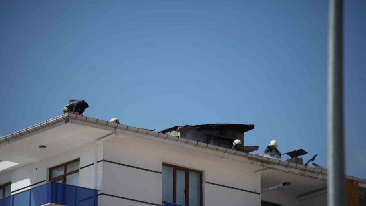 Konya’nın Karatay ilçesinde 5 katlı binanın çatısında çıkan yangın, paniğe neden oldu.